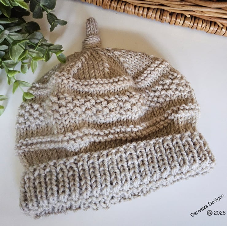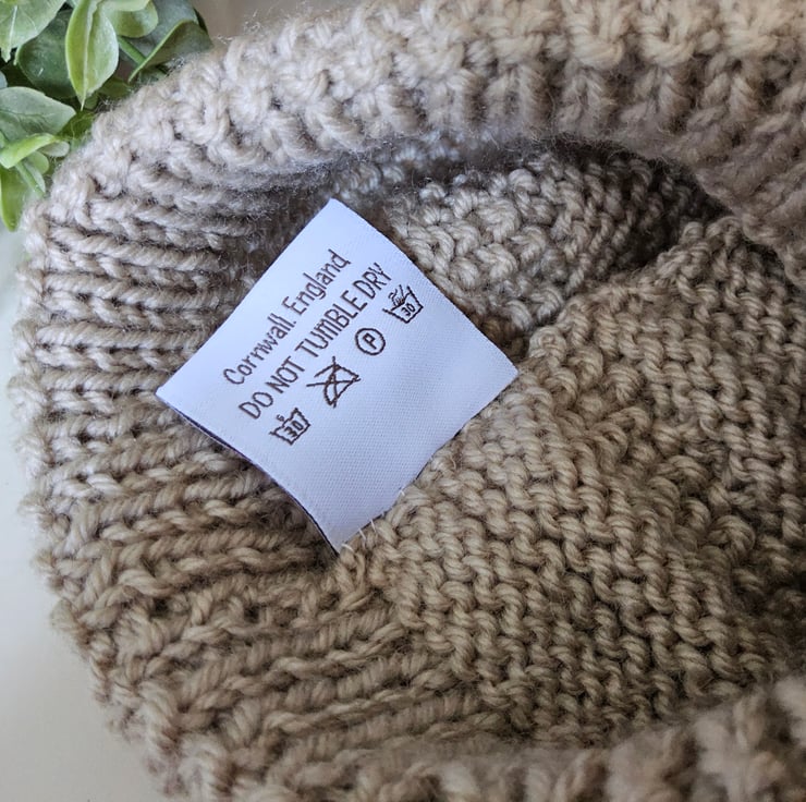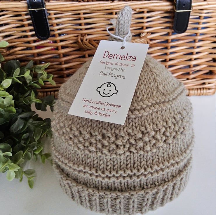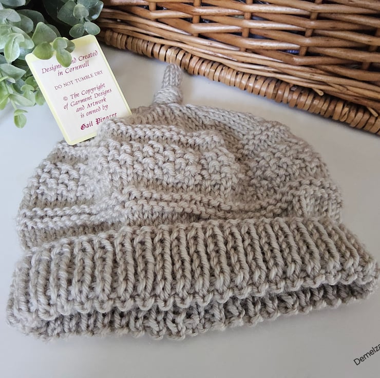 A lovely cosy baby hat guaranteed to keep a babies head and delicate ears protected from the cold and wind. It has been designed and hand crafted in Cornwall using top quality 90% super soft marino wool with 10% polyester. The yarn is garanteed machine washable by the manufacturer.