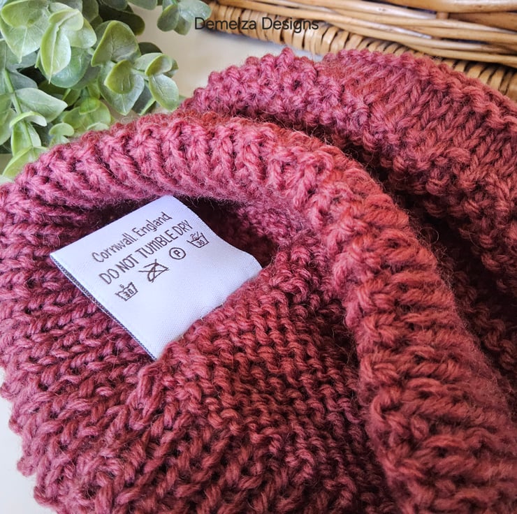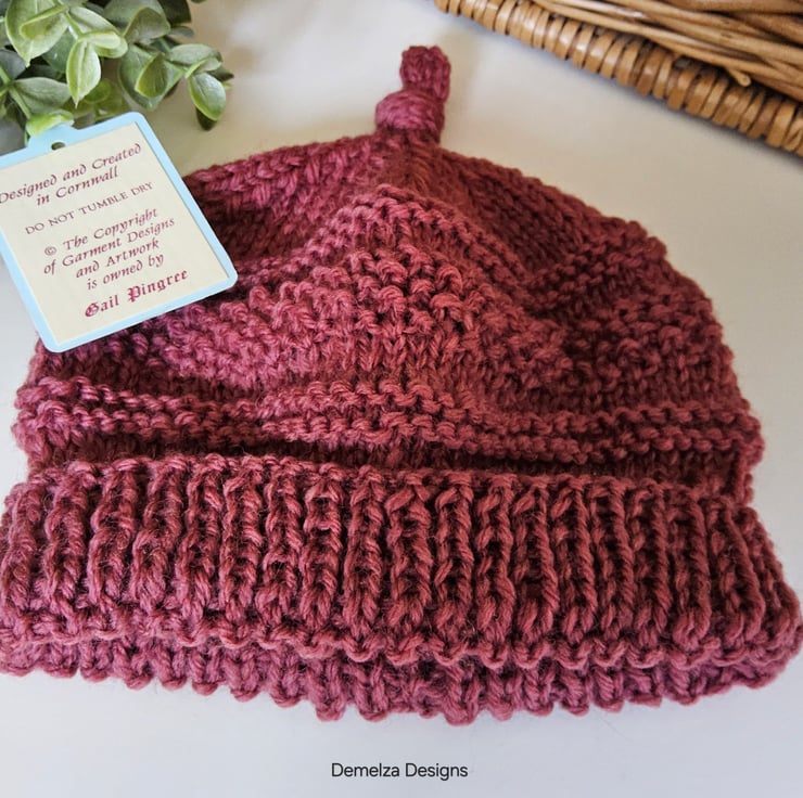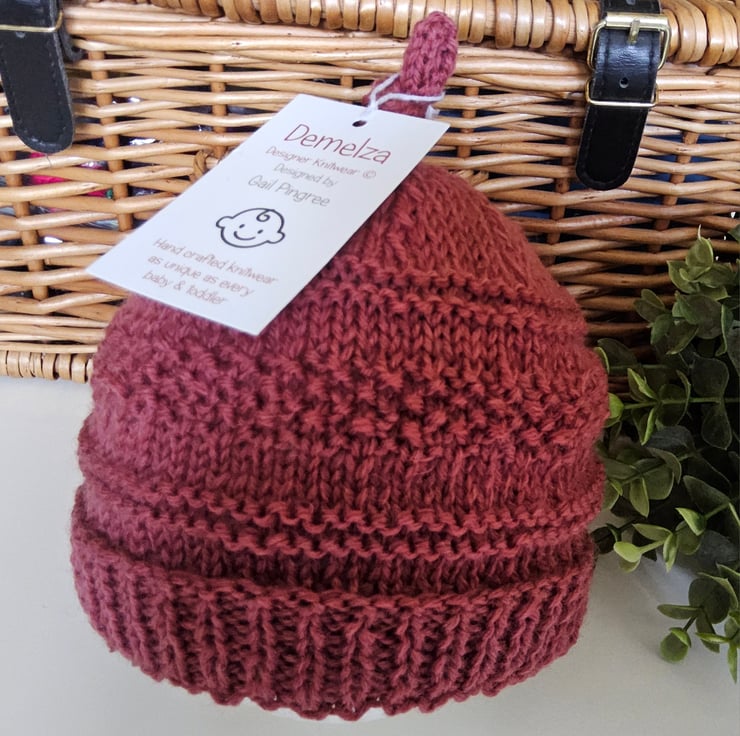 A lovely cosy baby hat guaranteed to keep a babies head and delicate ears protected from the cold and wind. It has been designed and hand crafted in Cornwall using the world famous 'Jeager' branded 100% Merino Wool yarn. The yarn is garanteed machine washable by the manufacturer. Please refer to photograph of ball band details.