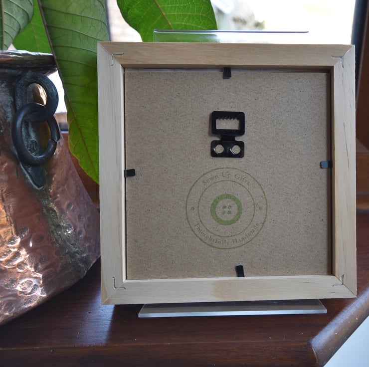 4. The frame can simply stand on any surface or be hung on a wall.
