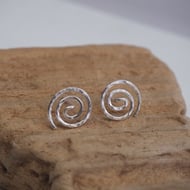 Small sterling silver stud earrings featuring a star burst stamped into the silver. These tiny unisex earrings are ideal for everyday wear and for a second/third piercing. The silver has been polished to a bright shine.