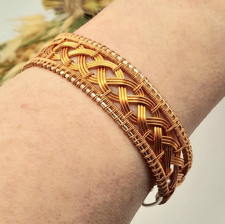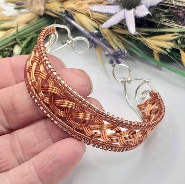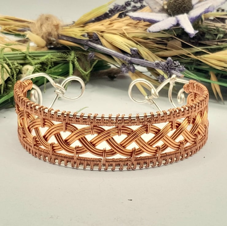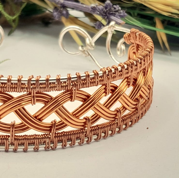 This is a stunning braided Cuff Bracelet made using copper and silver plated wire in a Celtic braided style.