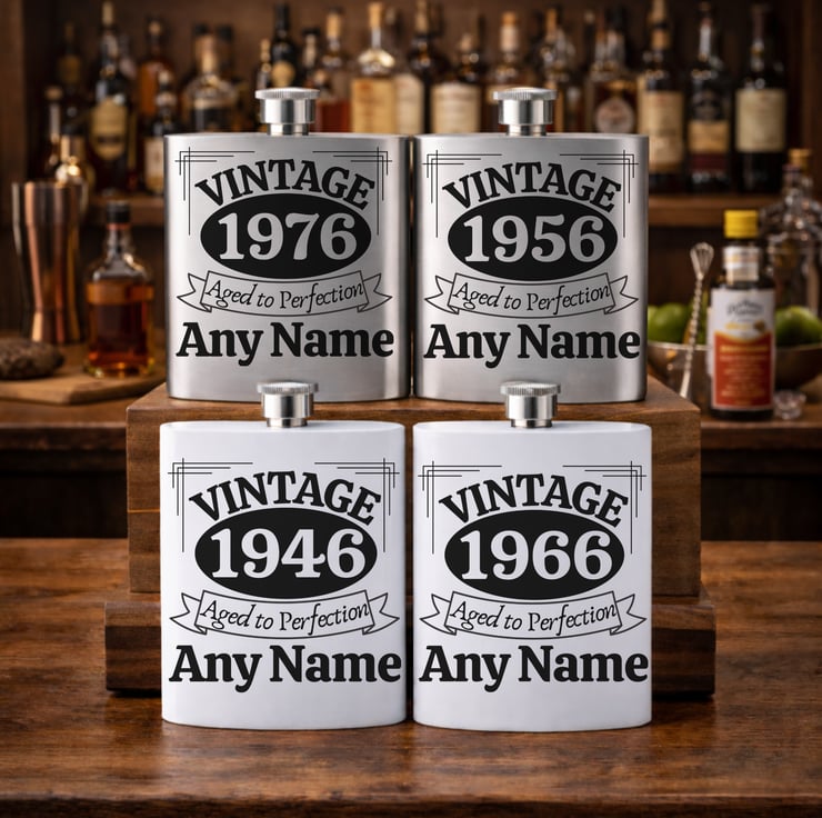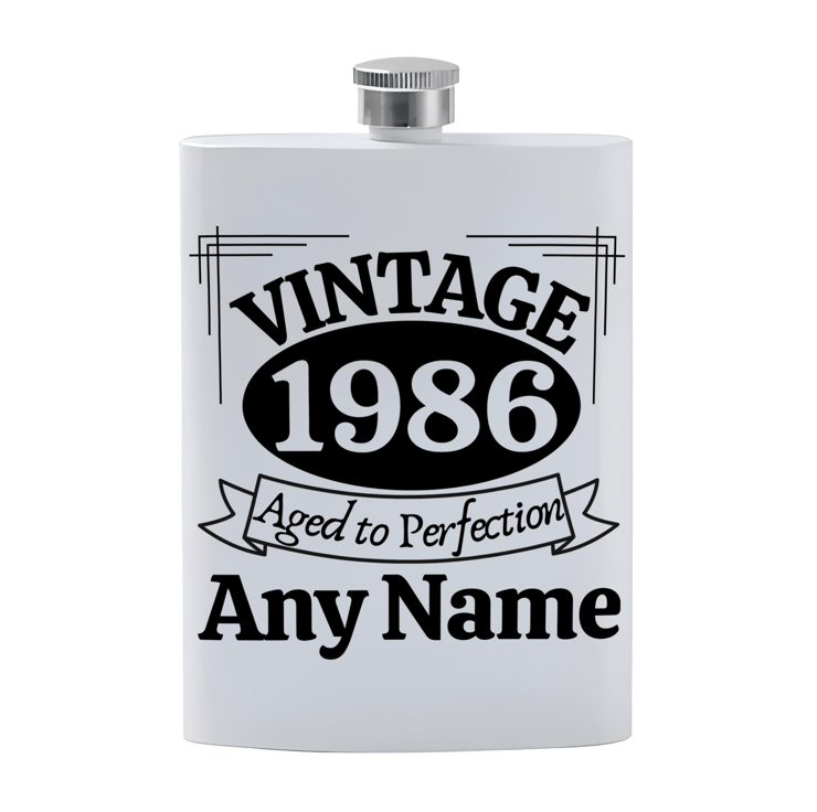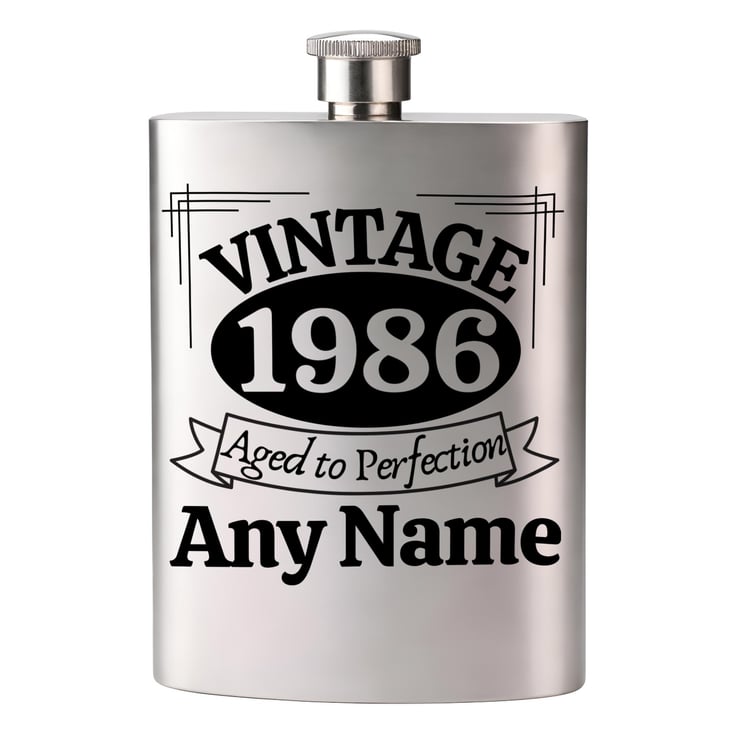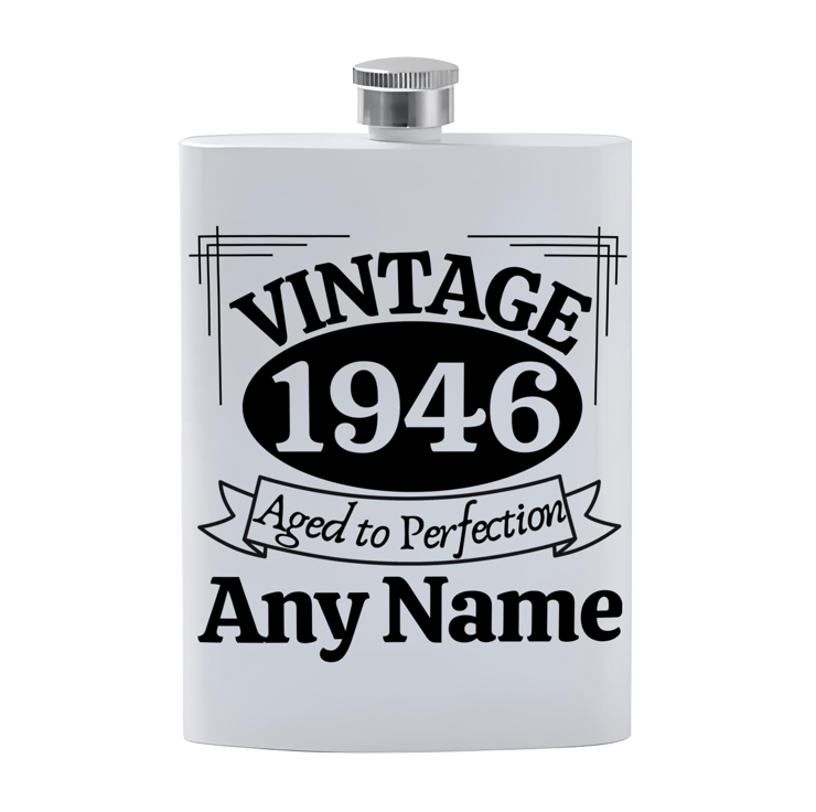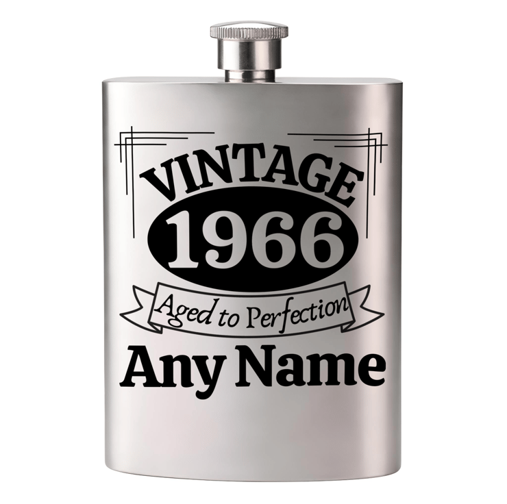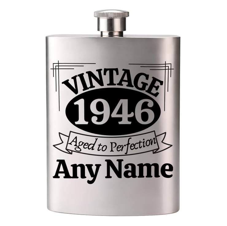 Personalised Name VINTAGE Birthday Stainless Steel Hip Flask