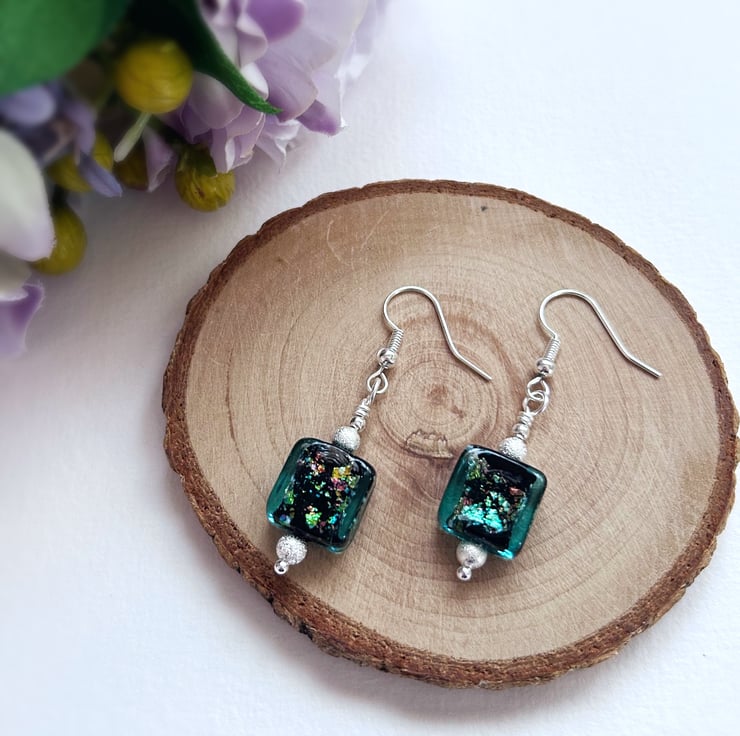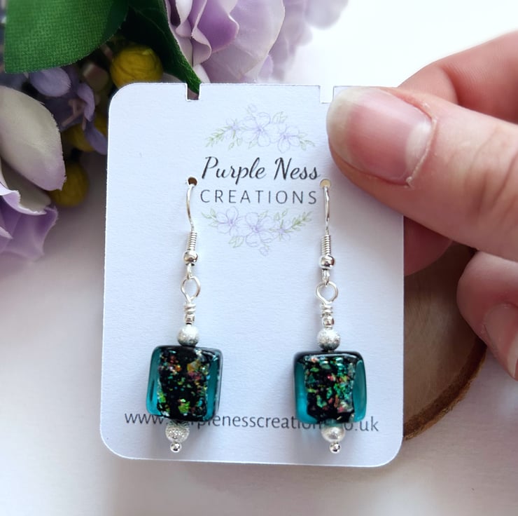 Please note - no two of the Dichoric glass beads are identical, giving these earrings a slight mismatched look. They also may look slightly different to those pictured but every effort is made to ensure you will have the best quality beads available.