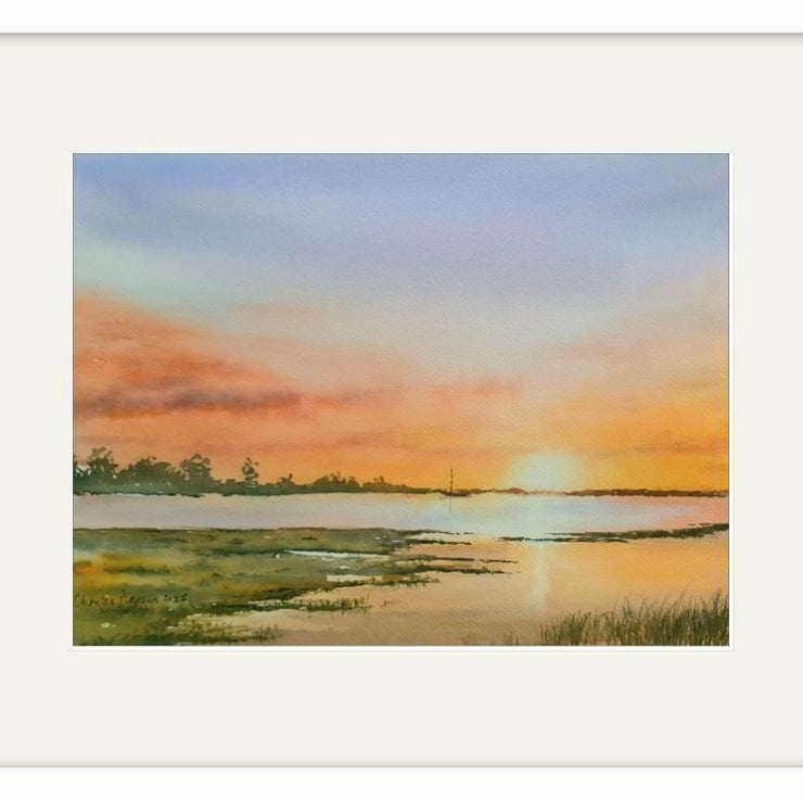 I was inspired to paint this sunset to create a sense of calm at the end of a summer's day, a distant boat at anchor on a balmy evening