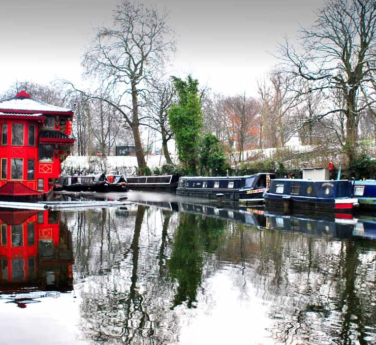 Old fashioned narrow boat moored along the Regent's Canal in Regents Park London England United Kingdom a photographic print photography by Andy Evans Photos