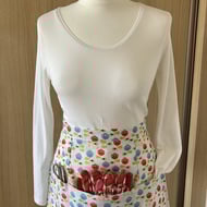 A small apron for a toddler or young child (possibly aged 2 - 6, we advise you use the measurements provided to check fit) in a variety of themed fabrics. Please note that, due to pattern placement, the apron you receive may not be exactly the same as the one shown.