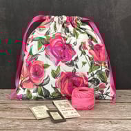 Handmade A6 Notebook, Sketchbook, 1950s Vintage Fabric, Red Roses, Purple Tulips