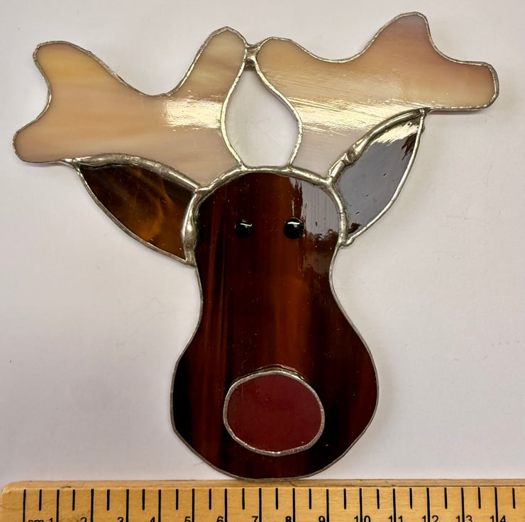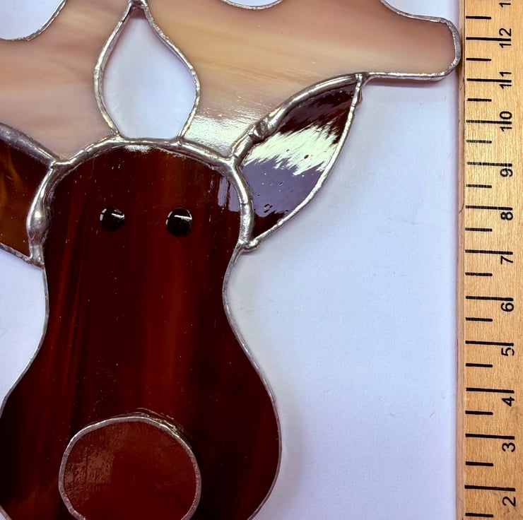 Each piece of glass is individually cut, foiled, soldered and cleaned by hand using the traditional Tiffany copper foil method. Craft glass naturally contains small variations and textures that make every reindeer unique. Colours have been photographed as accurately as possible, though they may appear slightly different depending on the light.
