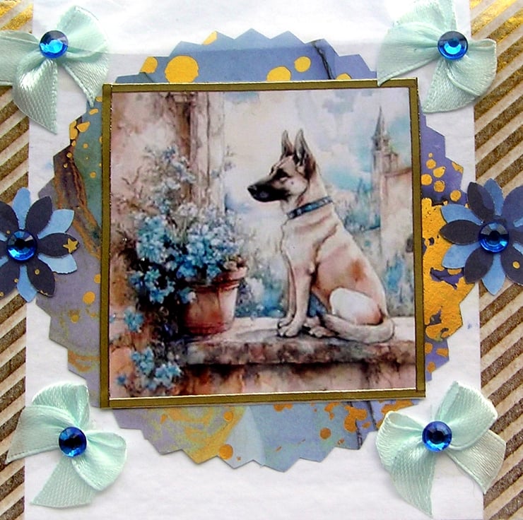 Belgian Shepherd Dog - Hand Crafted Decoupage Greeting Card - Blank (3151)