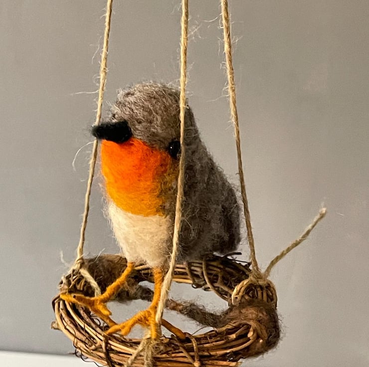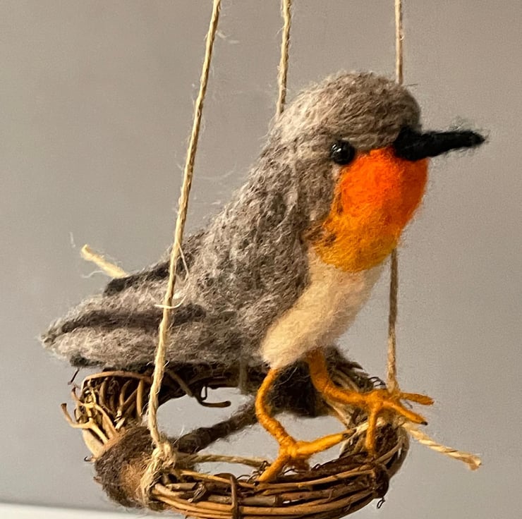 Carefully needle-felted from soft wool fibres, each detail is shaped by hand—from the robin's bright chest to the delicate swing it rests upon. No two are ever exactly the same, giving each piece its own unique personality.