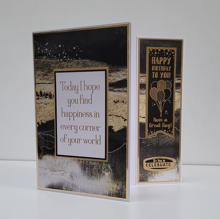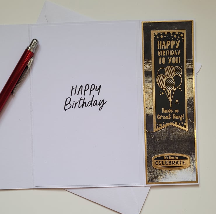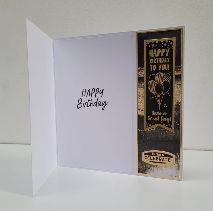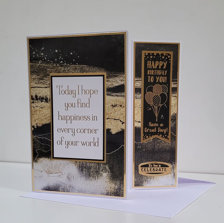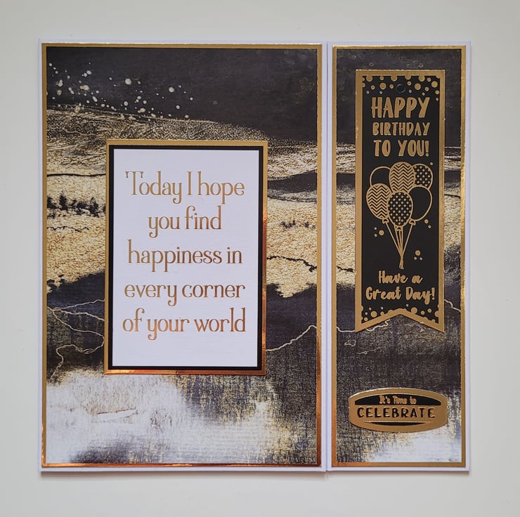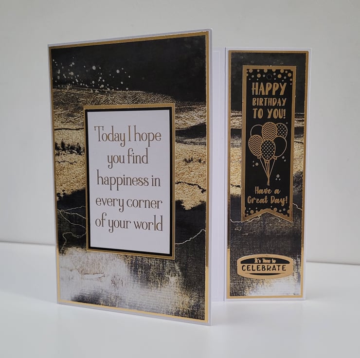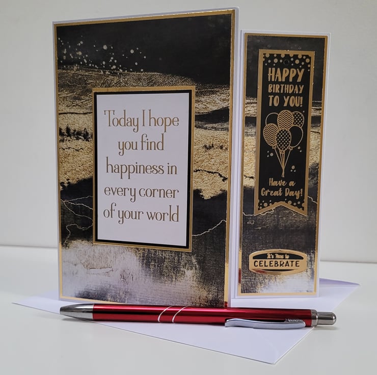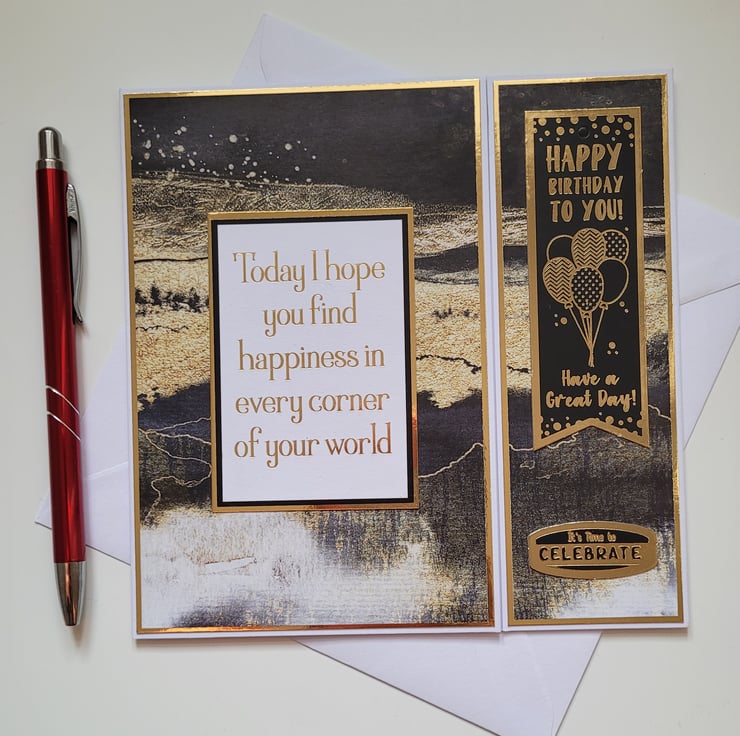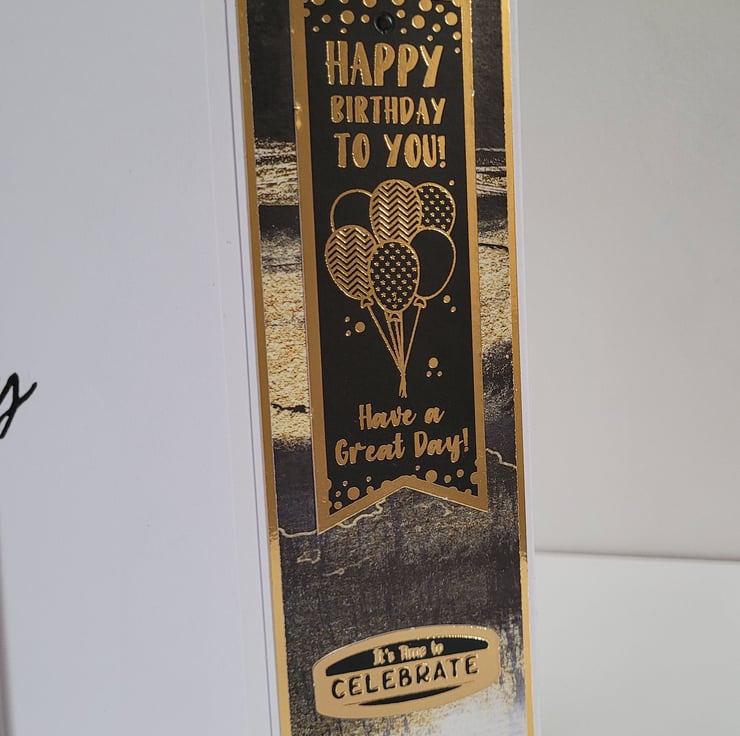 Celebrate someone special with this elegant handmade black and gold birthday card, designed to make a lasting impression. Featuring a luxurious metallic gold and deep black background with layered accents, this sophisticated birthday card is perfect for anyone who appreciates modern, stylish design.