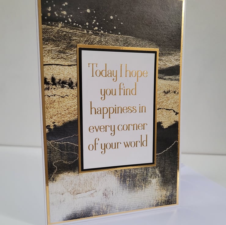 The card includes a heartfelt message: "Today I hope you find happiness in every corner of your world" along with two additional, gold foiled birthday sentiments that make it ideal for friends, family members, coworkers, or loved ones.