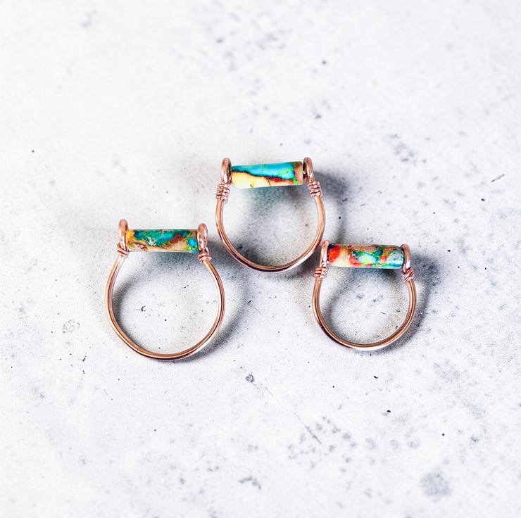 Solid Copper Imperial Jasper Semi Precious Rings - L - R (for other sizes please contact me)