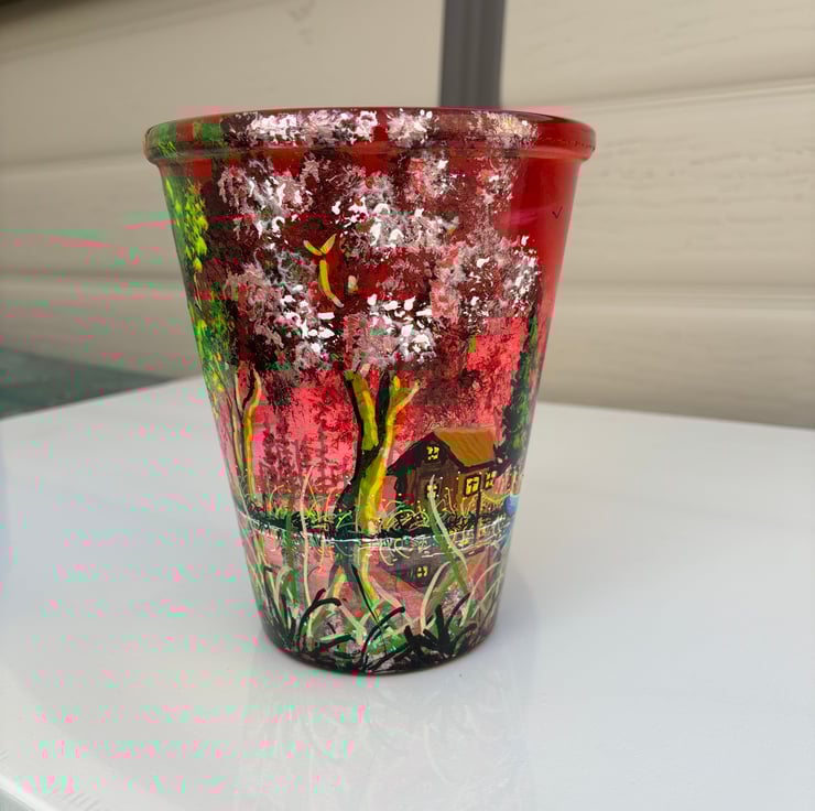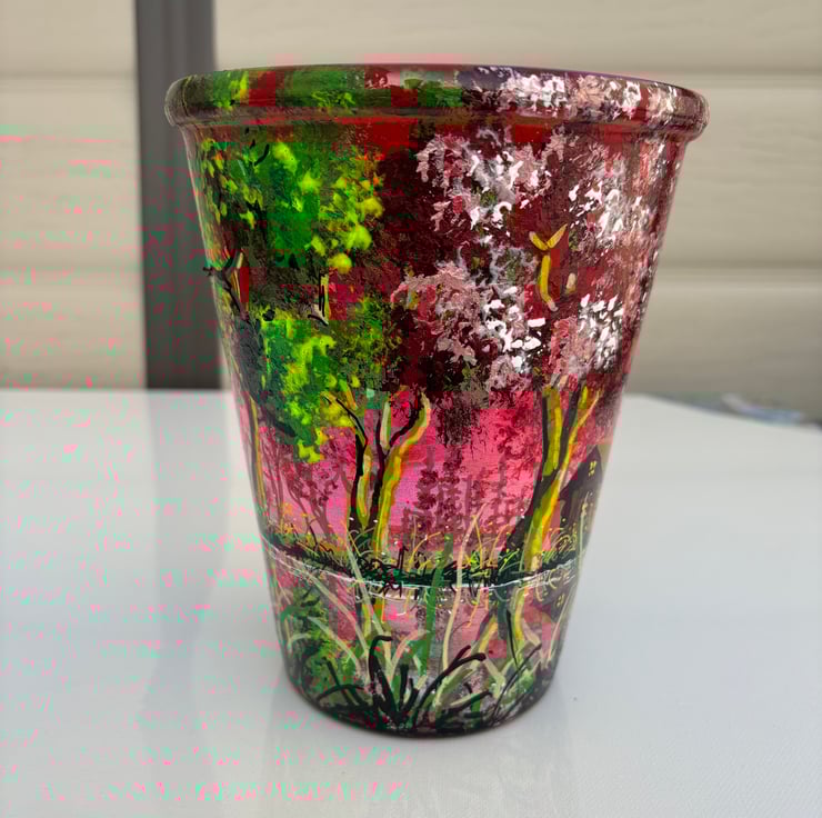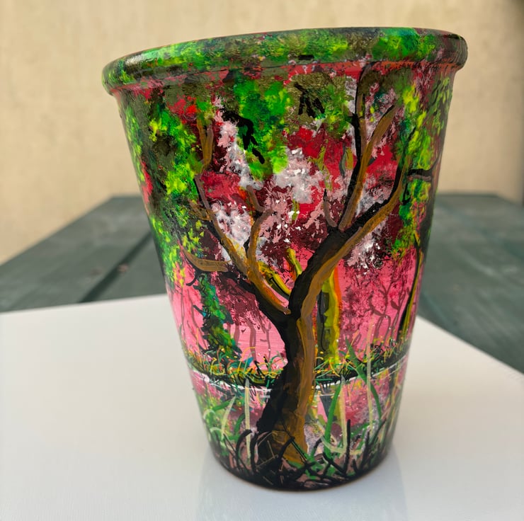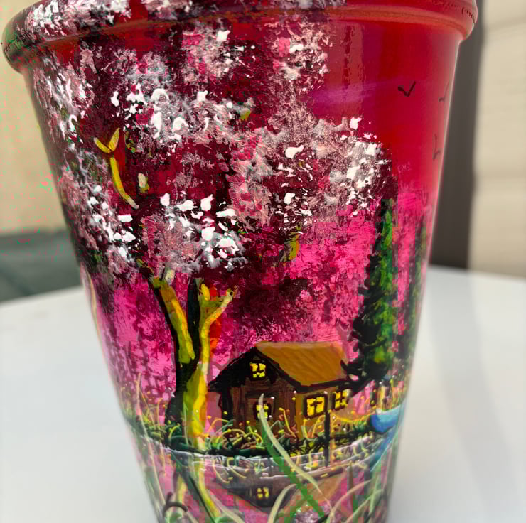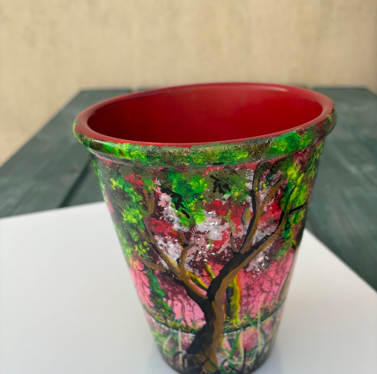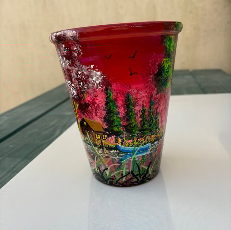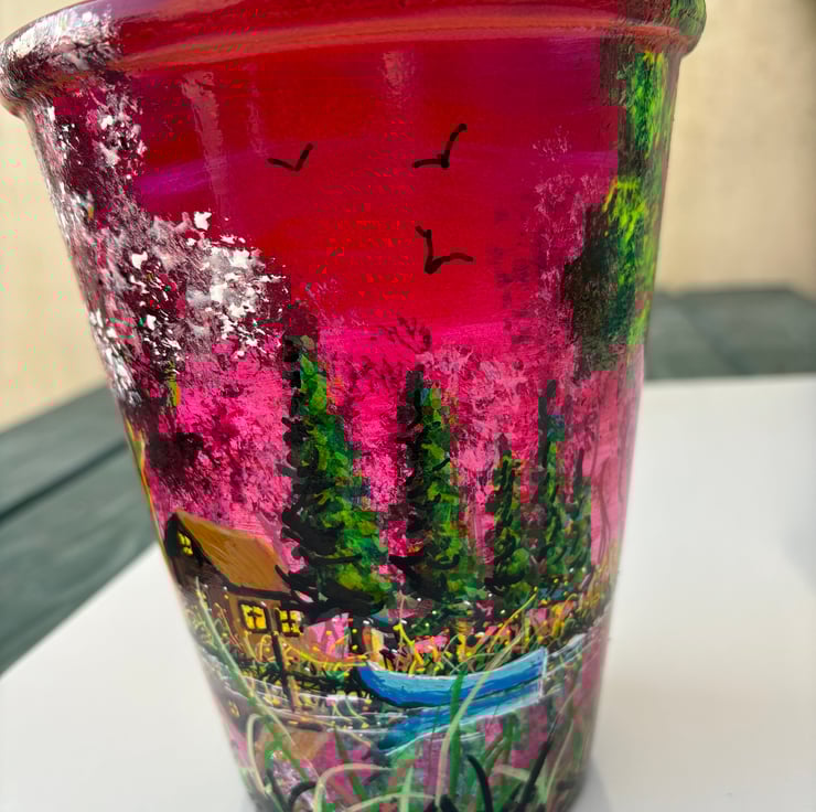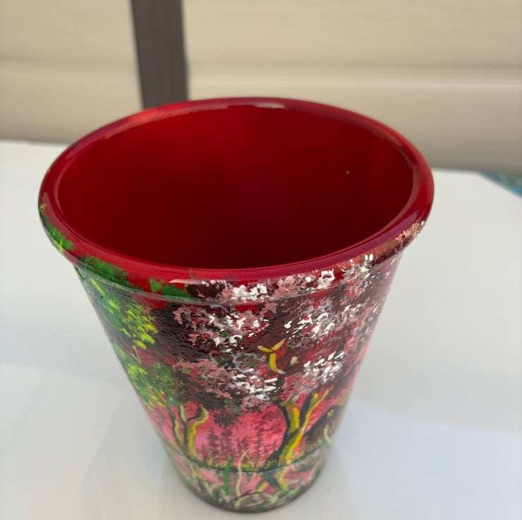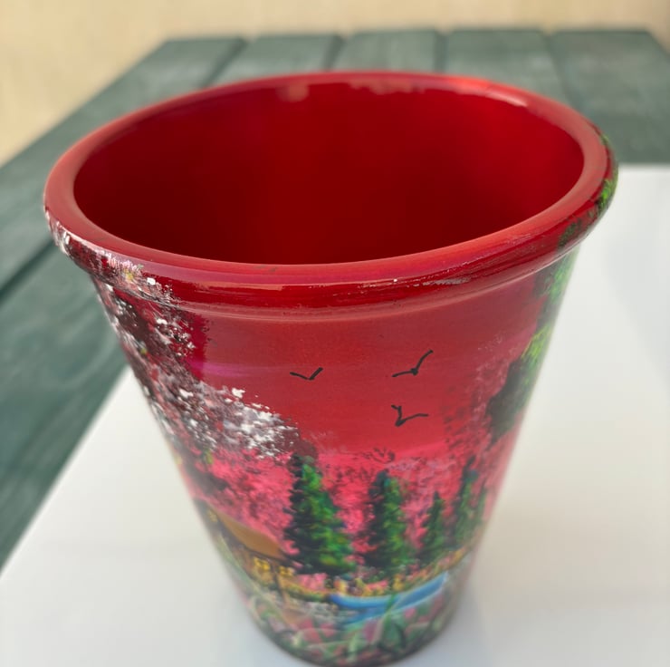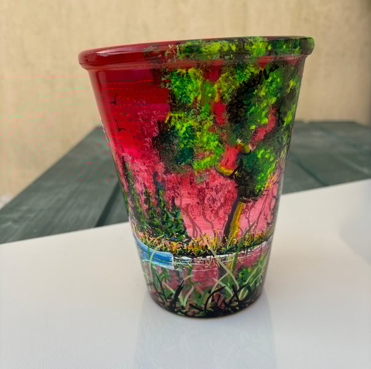 A hand painted and sealed pot by Andrew Jenkins