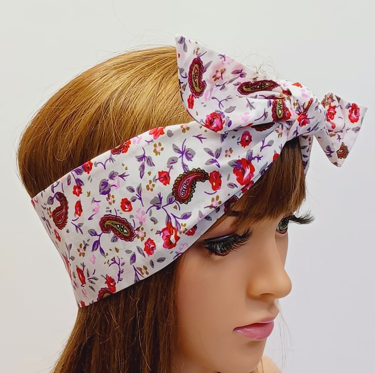 This self tie headband is made from printed 100% cotton fabric. The headband is NOT WIRED, NOT STRETCHY, UNTIED.