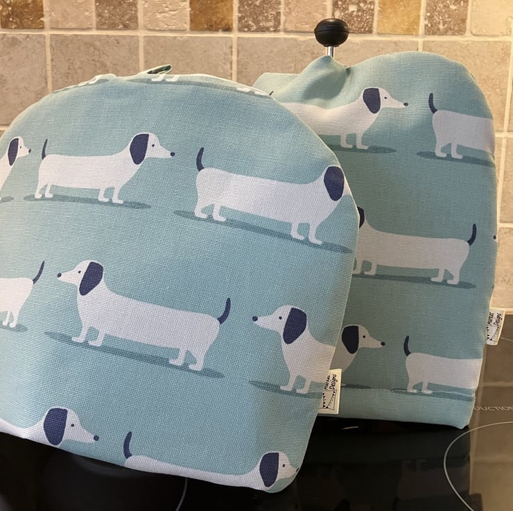 Your teapot will look gorgeous covered in this fabulous Dachshund fabric tea cosy and you will always have beautiful warm tea to boot! Treat yourselves or a friend this winter to a tea cosy. Will comfortably cover a 4-6 person teapot. Made from 100% cotton fabric for the outer, lined in white cotton with a thick layer of wadding to keep your tea piping hot.
