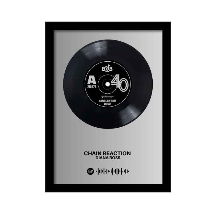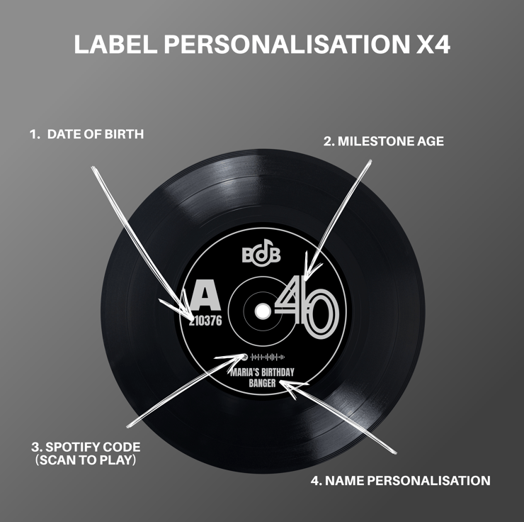 Celebrate a milestone birthday with a personalised framed 7" vinyl record, complete with a scannable Spotify code that plays the UK No.1 single from their birth date.