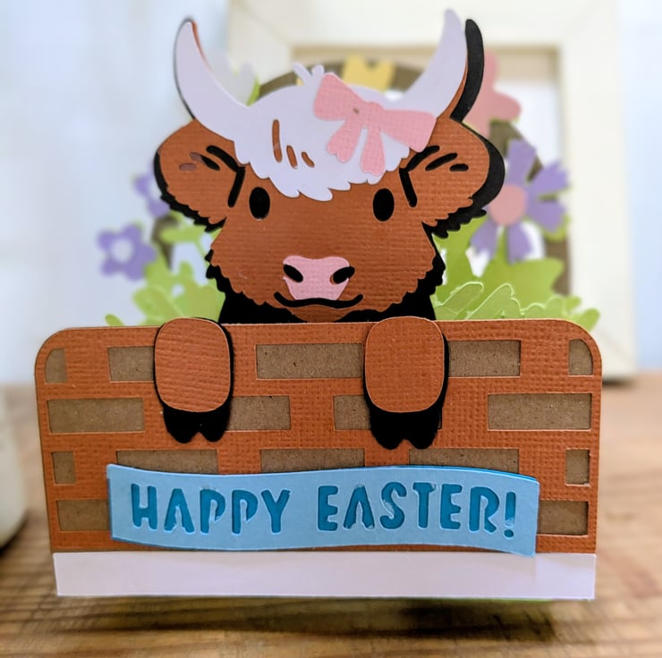 Celebrate Easter with a cute Highland Cow Pop Up Card.