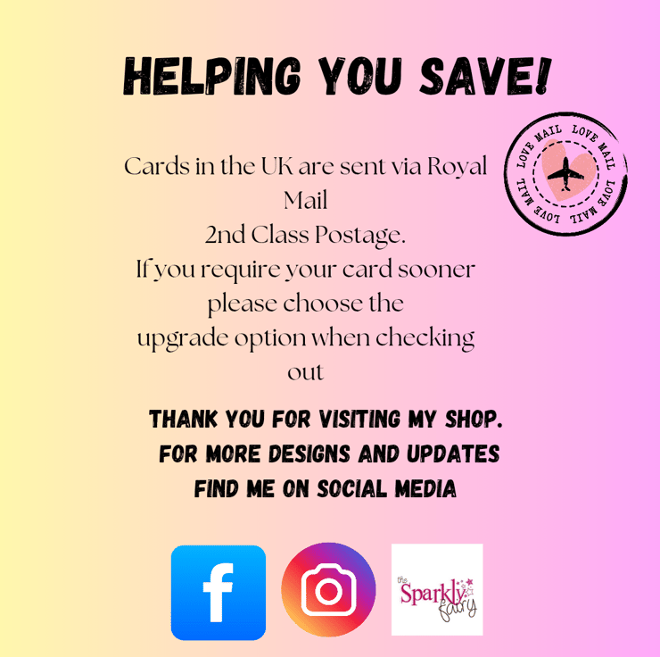 This item will be posted to you by The Sparkly Fairy - Quality Handcrafted Cards for all occasions within 3 days of receiving payment.