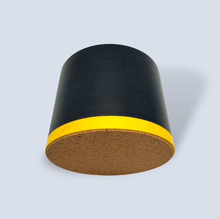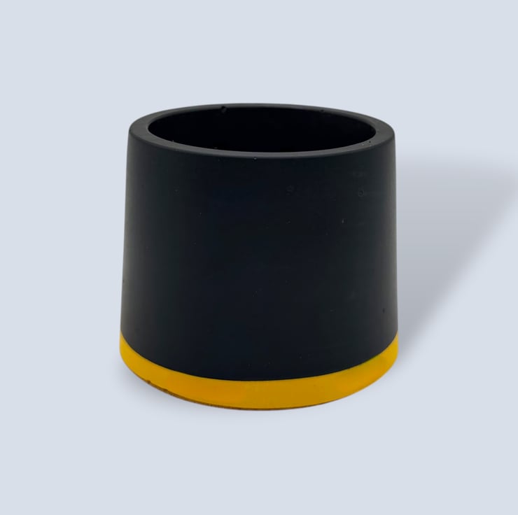 This piece was inspired by the contrast between bold colour and simple form. The deep black creates a calm, grounding base, while the bright yellow band adds a clean, uplifting edge that catches the light and draws the eye.
