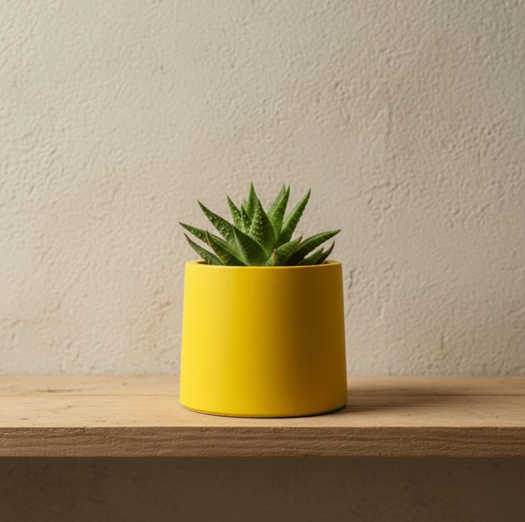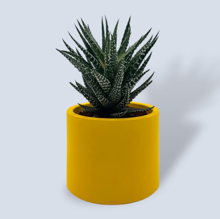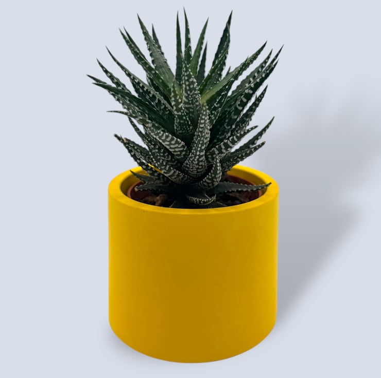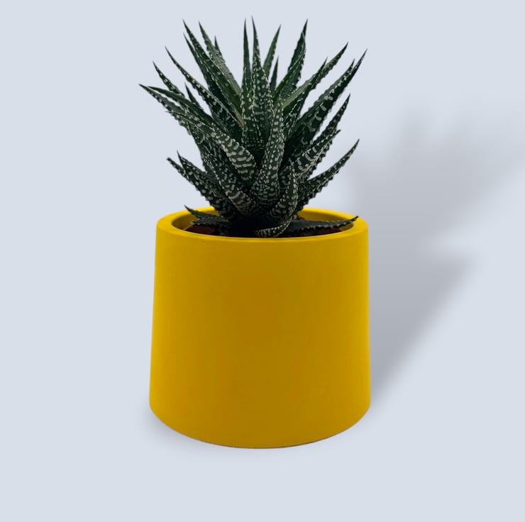 7.5 cm small yellow round plant pot indoor planter for houseplants, succulents and cuttings. This bright sunshine yellow planter features a smooth, modern finish, adding a bold pop of colour to desks, shelves and windowsills. A lovely gift for plant lovers or anyone who enjoys simple, contemporary home decor.