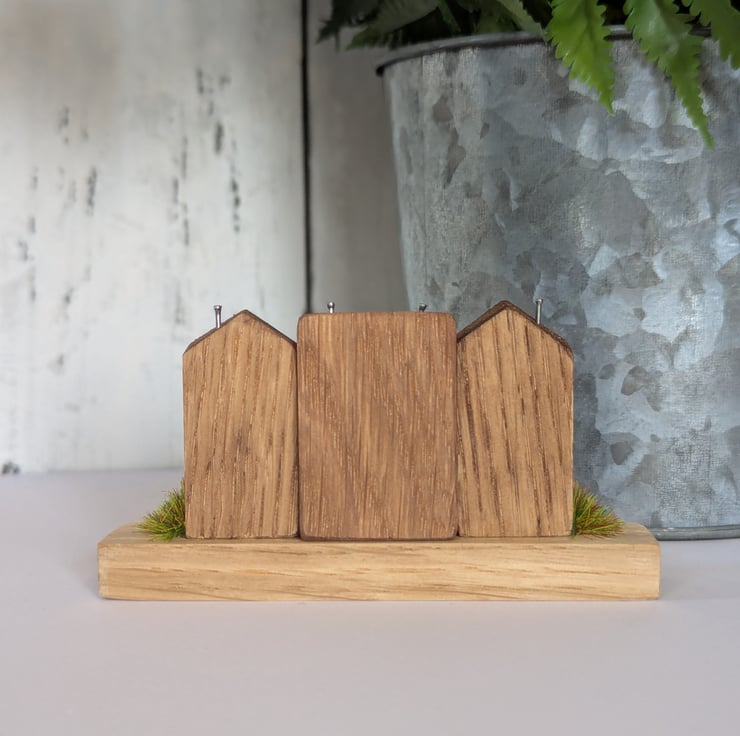 The cottages and base are solid pieces of oak. This brings a real quality to the piece and is lovely to hold.