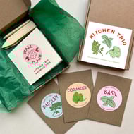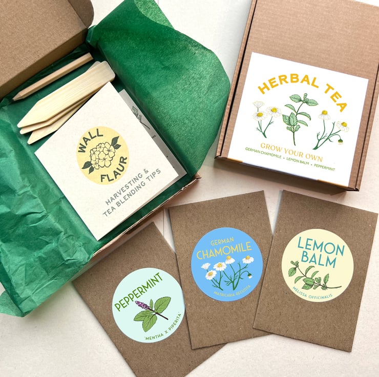 A beautifully illustrated' grow your own' seed collection. Featuring a selection of herb seeds to grow and harvest your own tea blend. Handmade with care in N.Ireland.