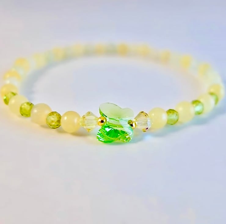 This pretty bracelet features a 10mm top quality Austrian crystal butterfly in the colour 'peridot'.