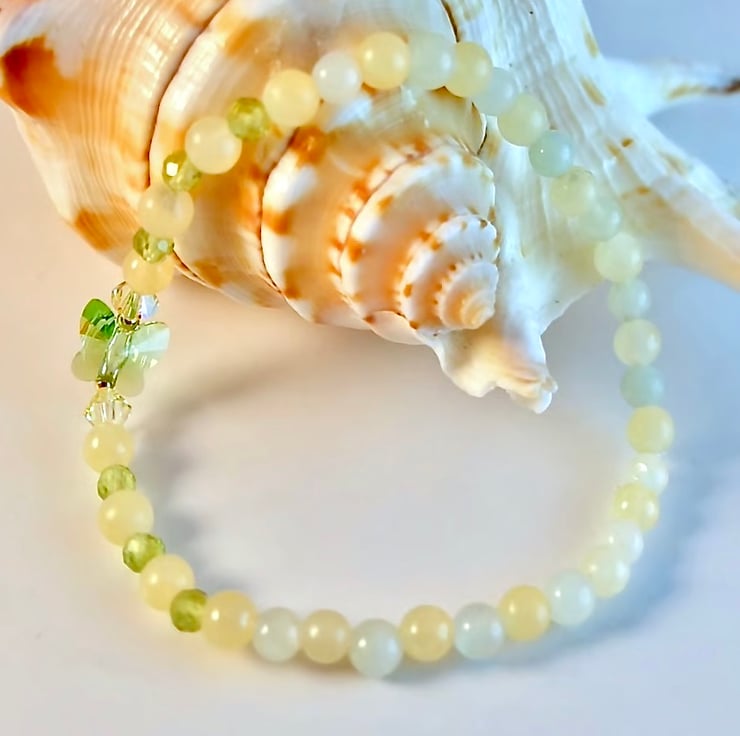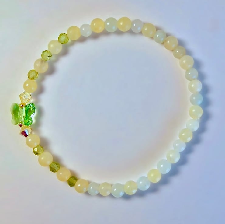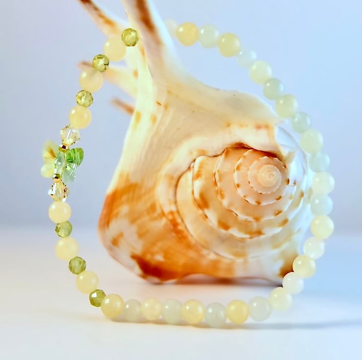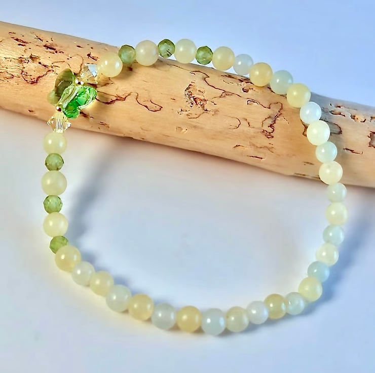 Mixed gemstone stretch bracelet in Spring colours of fresh green and pale lemon.