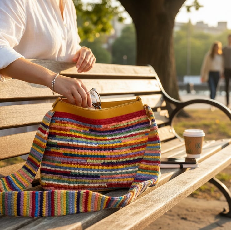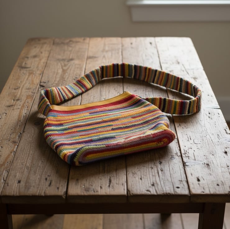 Hand-crocheted multi-colour crossbody bag, made to stand out and brighten every outfit. Lightweight, unique, and handmade with love
