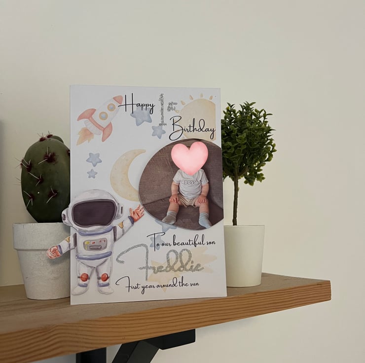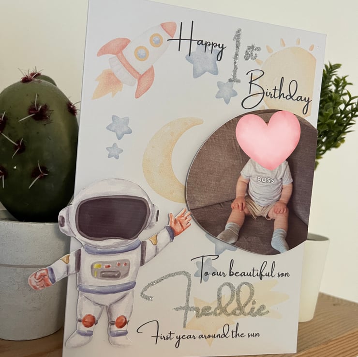 Add your child’s name, age and a favourite photo to create a truly unique and meaningful card. The design can also include a short message above the name perfect for marking this once-in-a-lifetime moment.