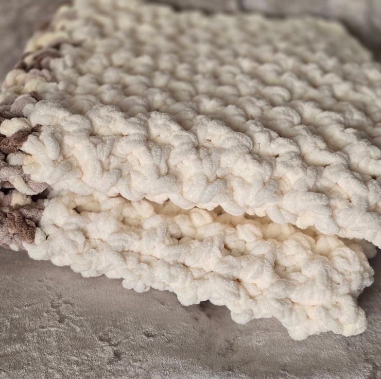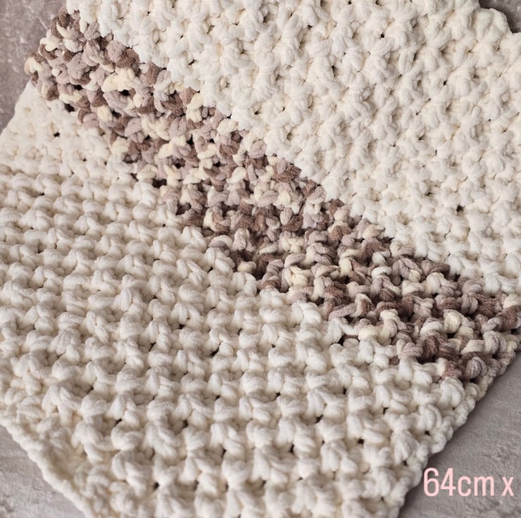 Crocheted with care in warm neutral colours to suit any gender. A perfect size for a pram, pushchair, moses basket, or just for a little bit of comfort. 61cm by 64cm