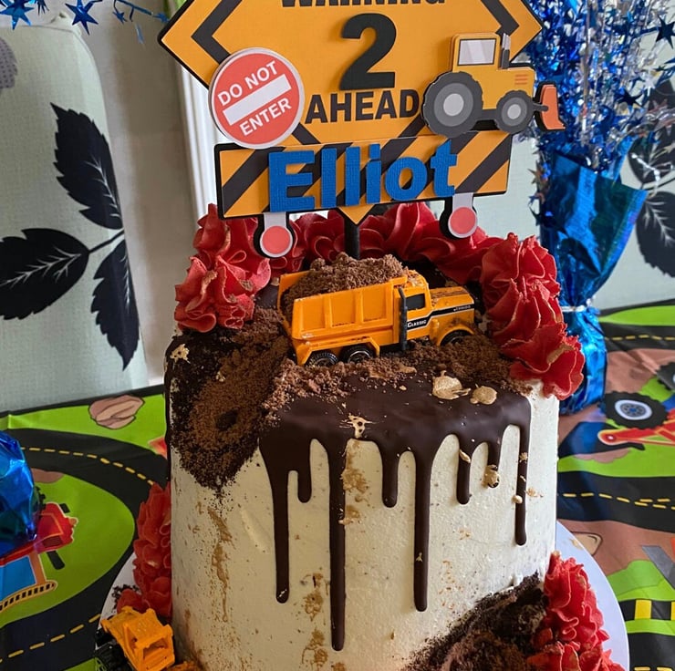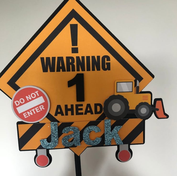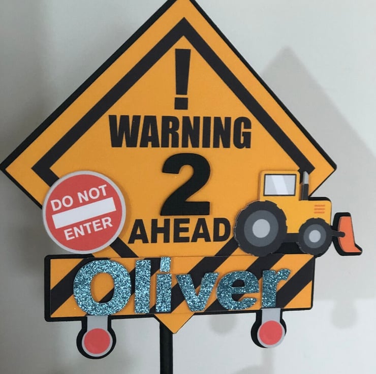 Fun warning sign construction themed cake topper.