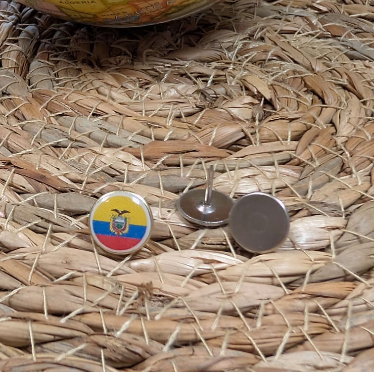 Perfect for adding a personal touch to your wooden travel map, cork board, or wall display, this pin is ideal for marking holidays, city trips, and memorable journeys across Ecuador.