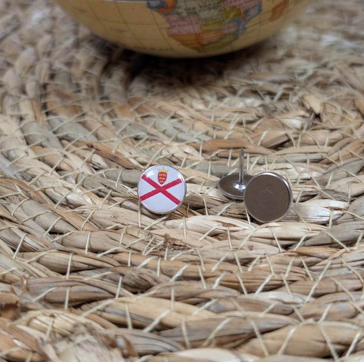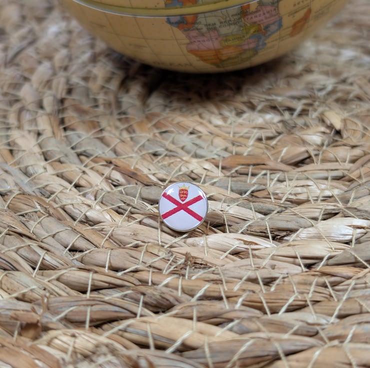Celebrate your travels to Jersey with this detailed flag map pin, featuring the official flag of Jersey. Each pin measures 10mm, perfectly sized for display on travel maps, cork boards, or wall collections.