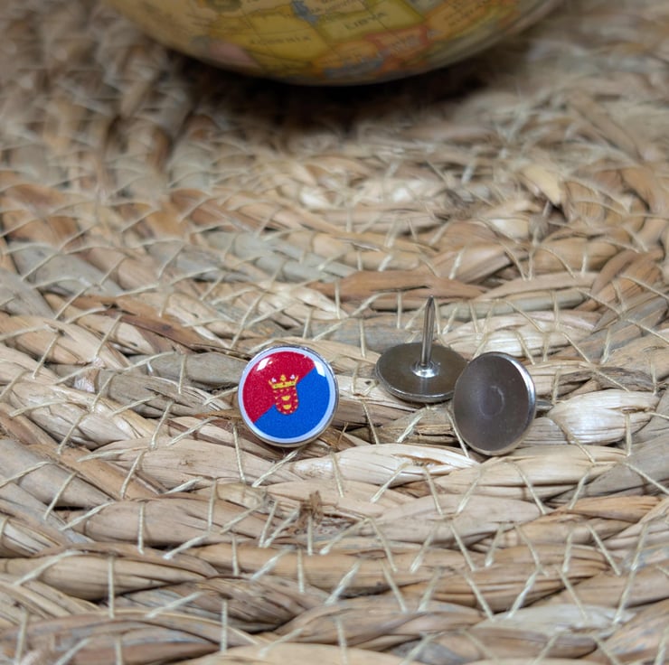 Celebrate your travels to Lanzarote with this detailed flag map pin, featuring the official flag of Lanzarote. Each pin measures 10mm, perfectly sized for display on travel maps, cork boards, or wall collections.