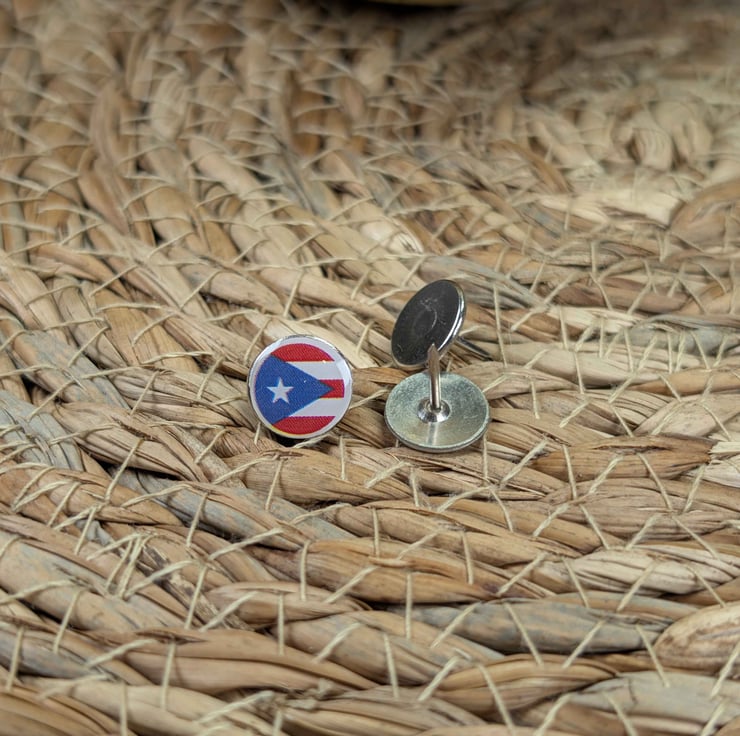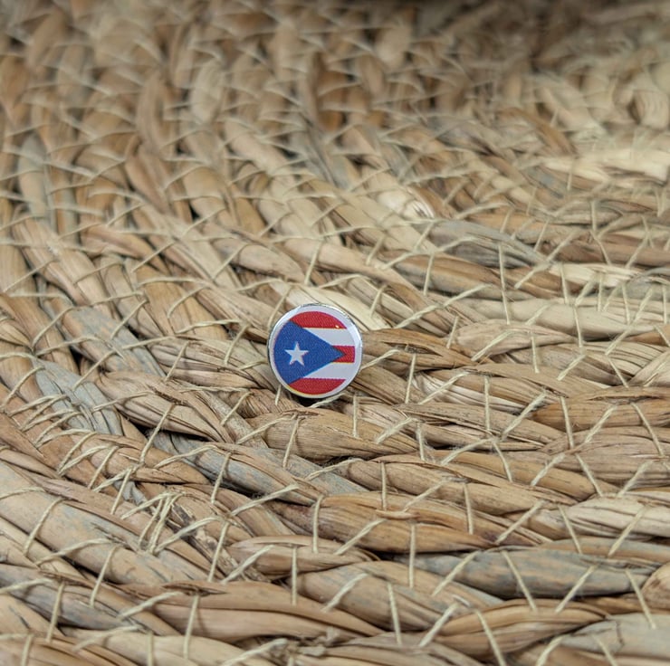 Celebrate your Caribbean travels with this vibrant Puerto Rico flag map pin, designed and featuring the bold red, white, and blue national flag with its iconic star.