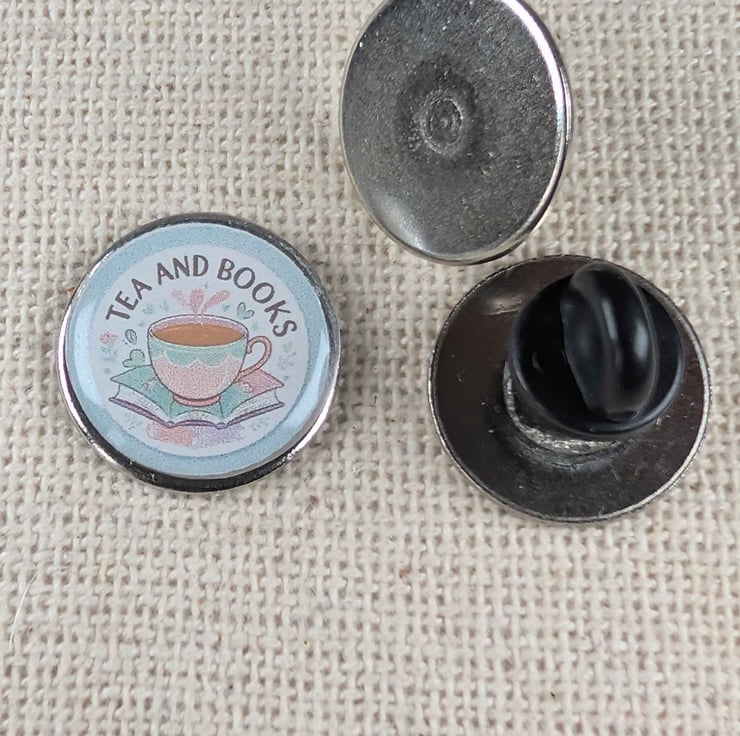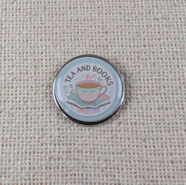 Celebrate cosy moments with this “Tea and Books” 18mm resin badge, perfect for book lovers and tea drinkers alike.