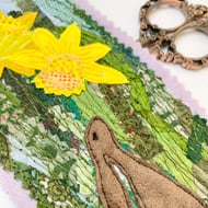 This cheerful embroidered little spring crocus card has been made with my own handmade up-cycled fabric and enhanced with free motion embroidery. It's perfect for a birthday, anniversary, Mothers Day or for someone very special. It is blank inside making it ideal for any occasion. This white card measures 14.5 x 14.5cm, comes with an envelop and in a plastic cover for protection.