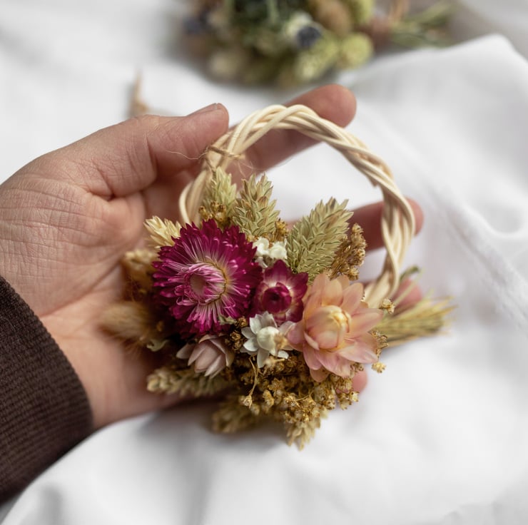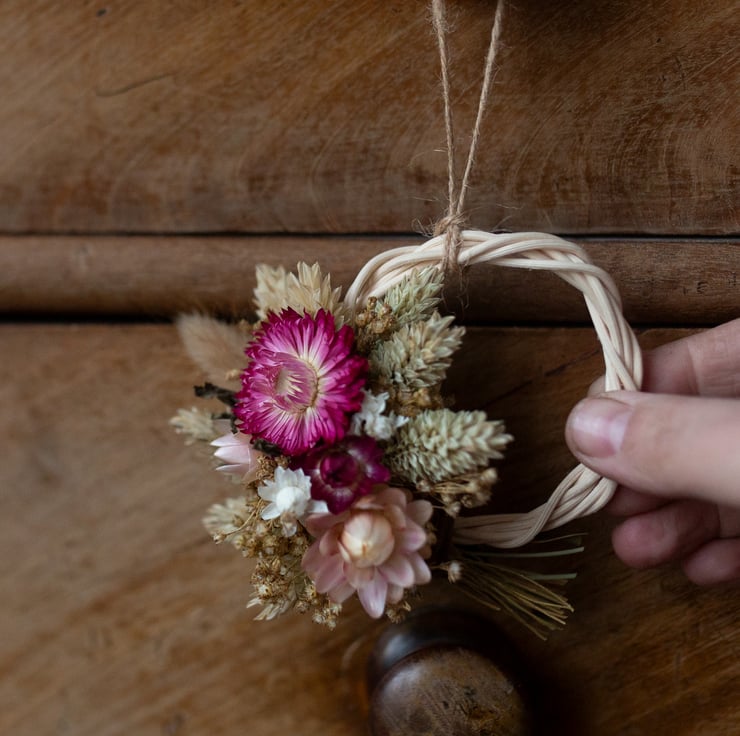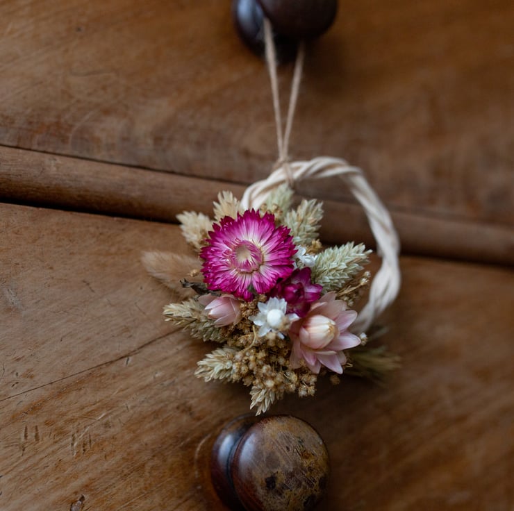 Mini pink dried flower wreath