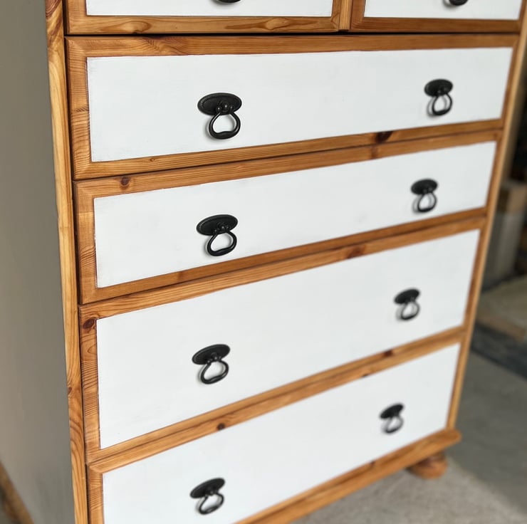Everything is stained & sealed with all natural products that I mix and match myself, using a mix of natural oils, waxes & stains.