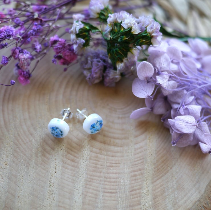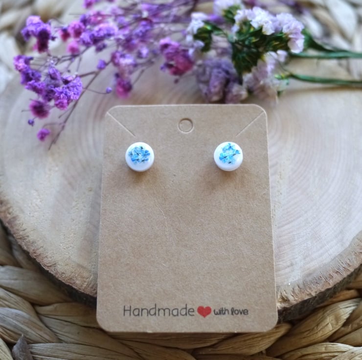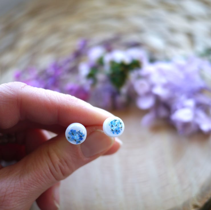 I added delicate real dried flowers for this pair of stud earrings and cast them in white resin. The posts and backs are sterling silver for those with sensitive ears (like me!) so they are hypoallergenic for everyone. These studs are perfect for everyday use, & I think are a lovely little accessory to add for any occasion :)