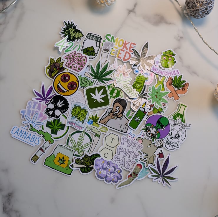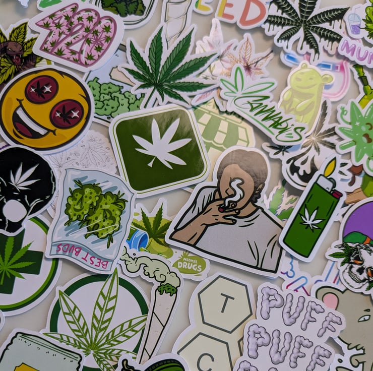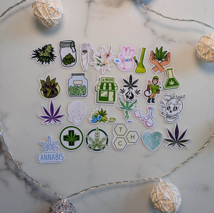 Add a fun, bold vibe to your items with this mixed weed sticker pack