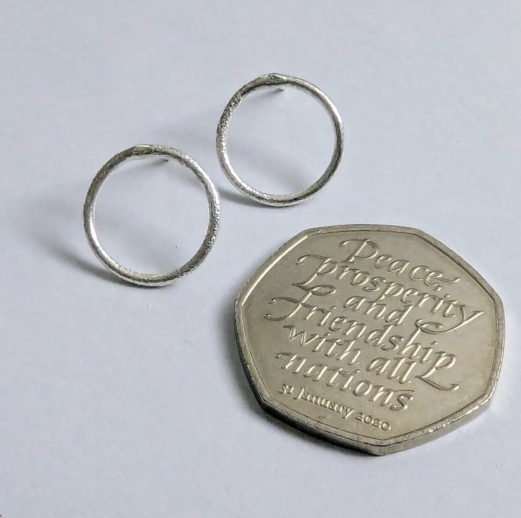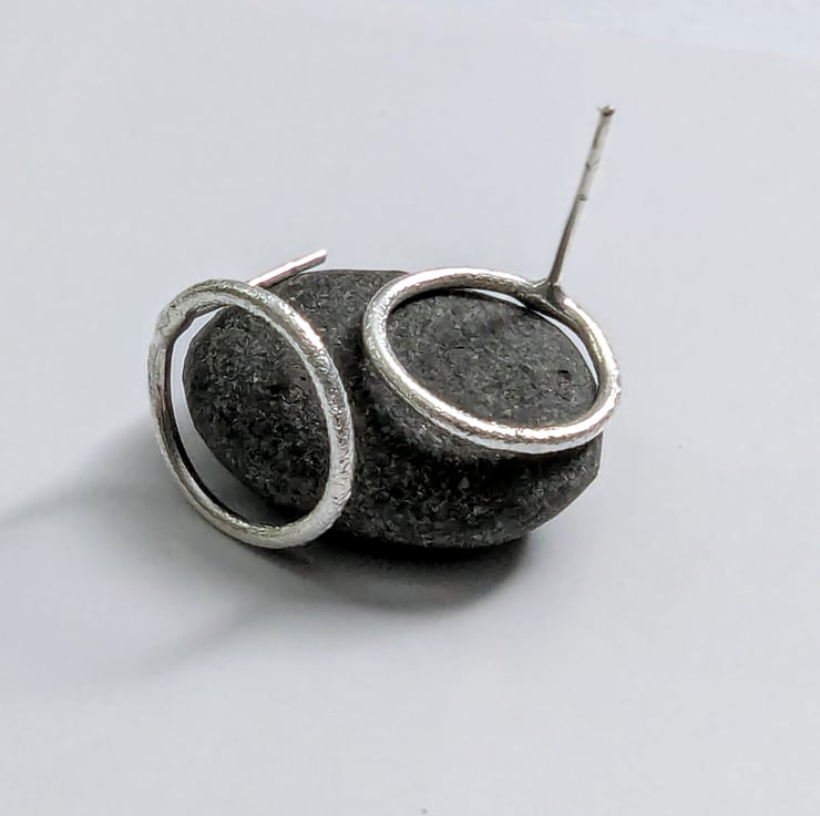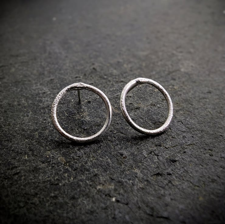 Silver hoops with a heat flame texture (reticulated) heating the metal until it starts to bubble and breakdown, then immediately take away the flame, The applied texture is unique, tactile and has organic contemporary look.