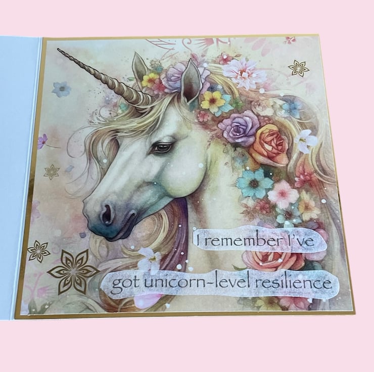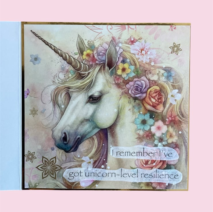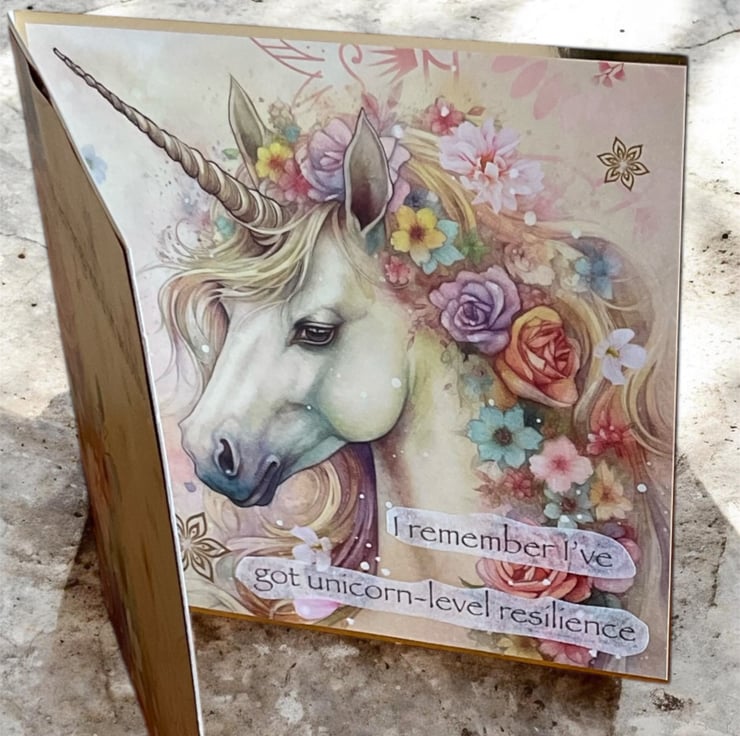 The front of the card features the phrase “When things feel a bit wobbly” and inside has the powerful and reassuring message: "I remember I’ve got unicorn-level resilience”.