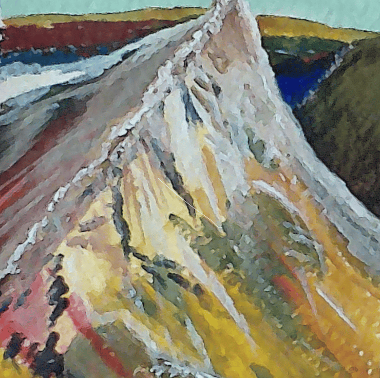 This is a high quality print of my original artwork which was done in acrylic on handmade paper. The colours reflect those captured during a late September visit when the mountain was singing.