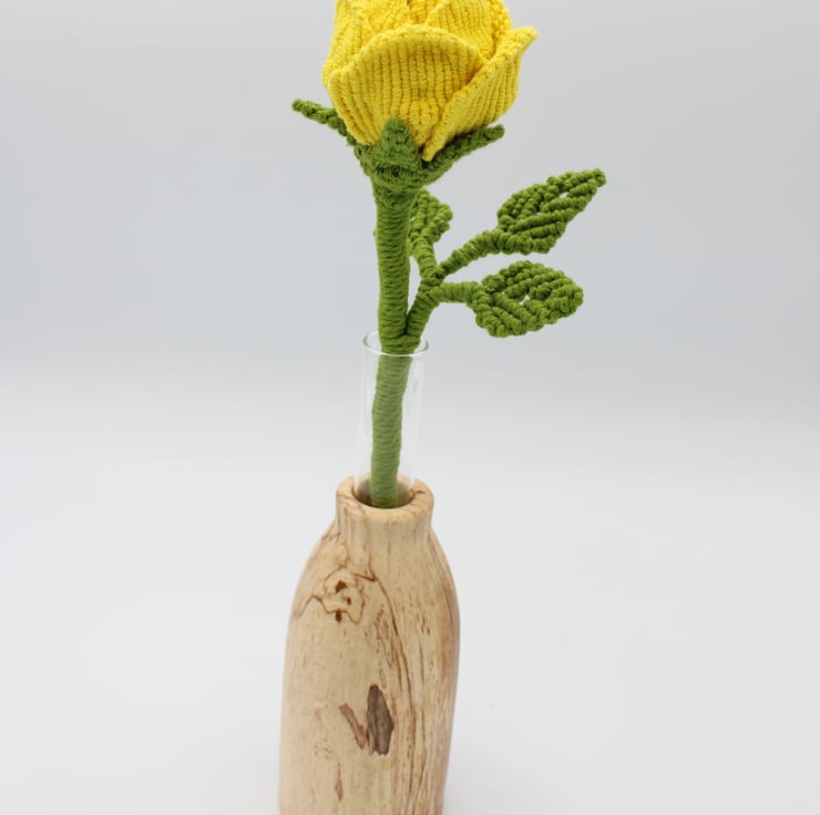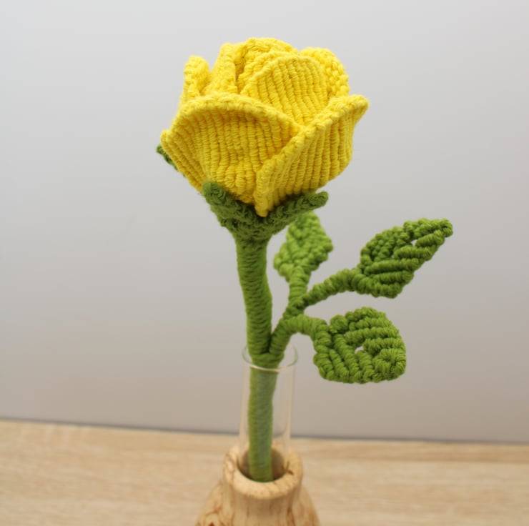 Yellow roses are a symbol of friendship and joy making this pretty macrame rose bud the ideal gift for all kinds of occasions like birthdays, Mothers Day, Anniversaries and housewarming,