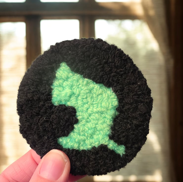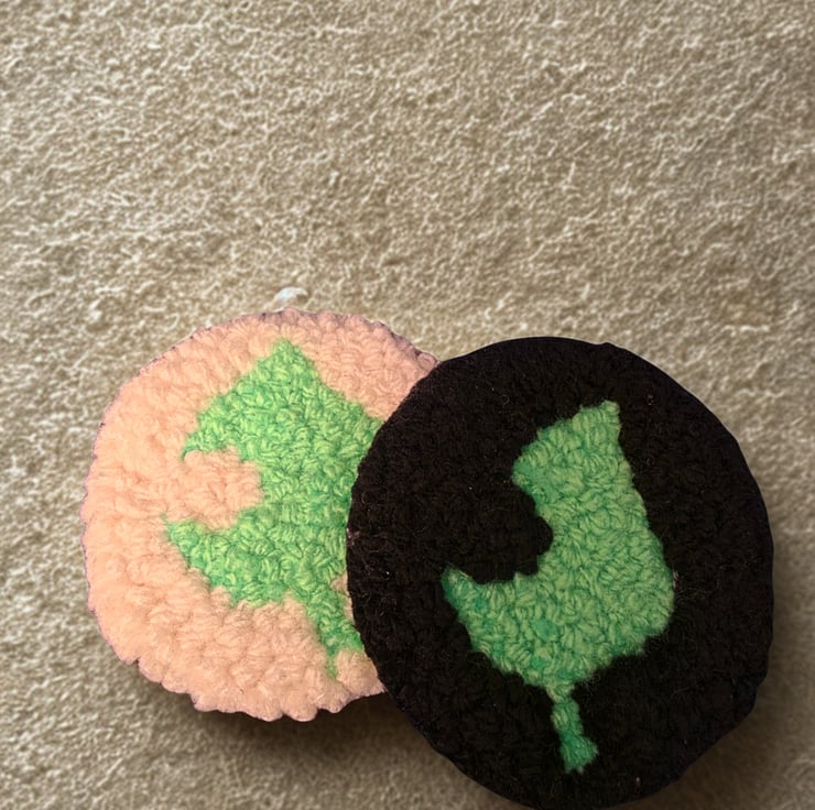Pair of Animal crossing leaf inspired punch needle coaster, gamer desk accessory