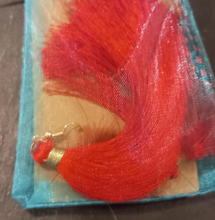 Red feather tassel Earrings dangly earrings Handmade OOAK