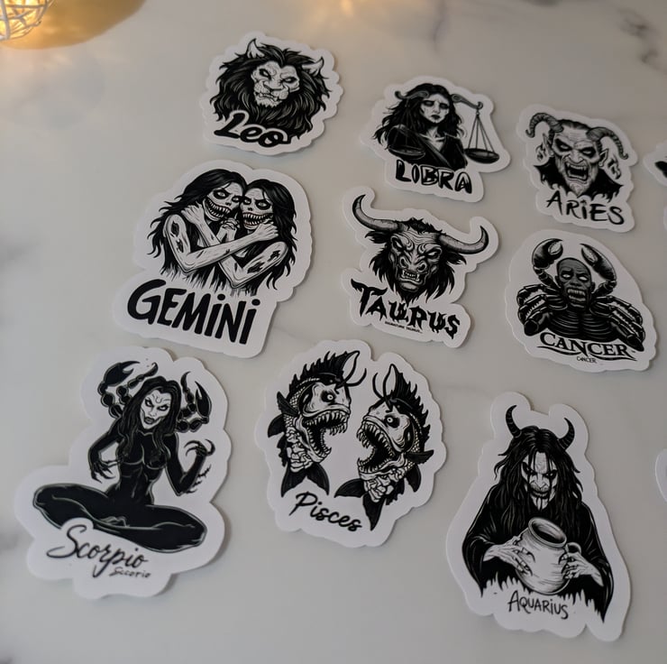 Set of 12 zodiac stickers (all star signs included)